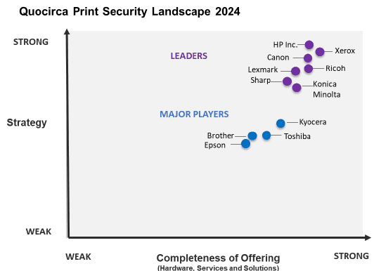 “Quocirca is a global market insight and research firm specialising in the convergence of print and digital technologies in the future workplace. Since 2006, Quocirca has played an influential role in advising clients on major shifts in the market. Our consulting and research are at the forefront of the rapidly evolving print services and solutions market, trusted by clients seeking new strategies to address disruptive technologies.”²