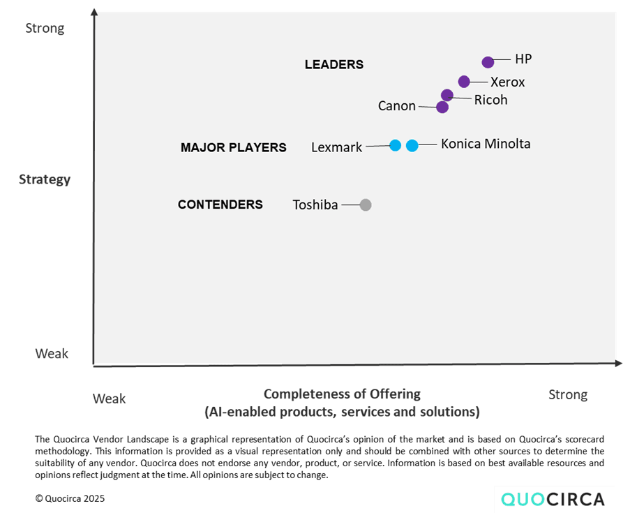 “Quocirca is a global market insight and research firm specializing in the convergence of print and digital technologies in the future workplace. Since 2006, Quocirca has played an influential role in advising clients on major shifts in the market. Our consulting and research are at the forefront of the rapidly evolving print services and solutions market, trusted by clients seeking new strategies to address disruptive technologies.”²
