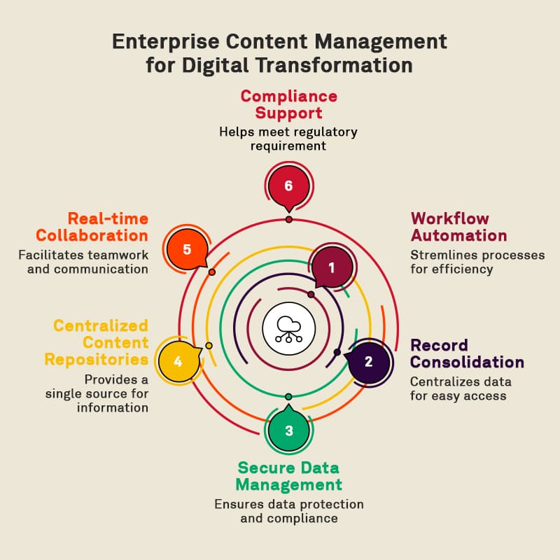 • More available data at your fingertips. A well-structured enterprise content management program puts all the relevant content at everyone’s fingertips, empowering informed decision-making.