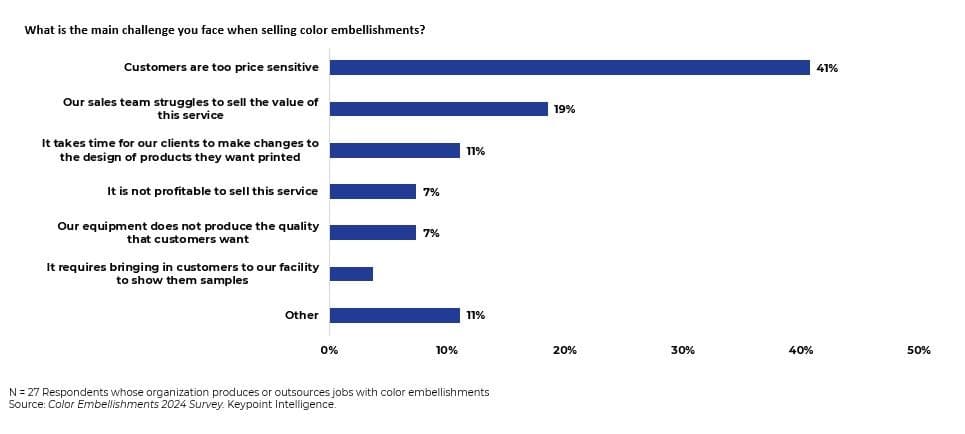 However, many respondents revealed that they do not actively sell color embellishments; rather, it was up to the customer to approach them. This is a clear opportunity for PSPs to seize the initiative. Why sit back and wait if they’ve invested in technology that could unlock business opportunities and fuel growth?