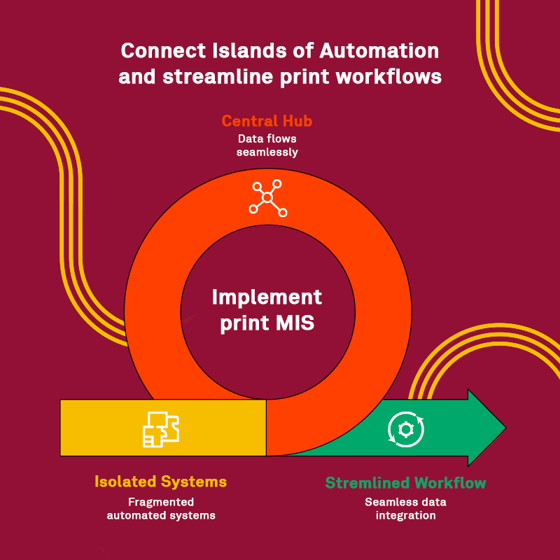 The key to overcoming ‘islands of automation’ lies in connecting disparate systems effectively. Implementing a robust Print MIS acts as the central hub, ensuring data flows seamlessly across the entire workflow.